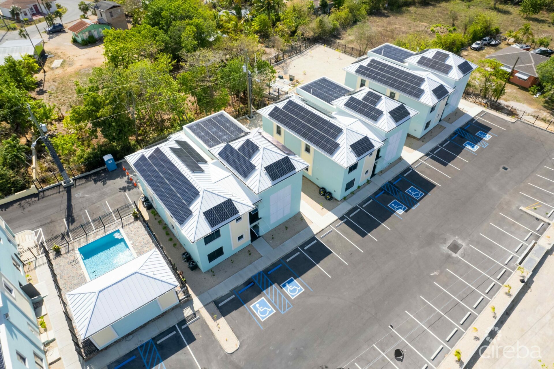The whole complex has been built to hurricane standard and is at a minimum of 18ft above the high water mark, ensuring safety and peace of mind. The added bonus of solar panels, low R powder coated windows and other energy efficient features cover electricity costs!