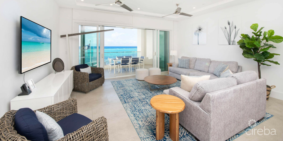 Welcome to this stunning 3-bedroom, 3.5-bathroom condo at Rum Point Resort, offering 2,250 sq. ft. of sleek finishes, designer décor, and unobstructed ocean views. This spacious, open-concept layout maximizes natural light and indoor-outdoor island living. Step onto your private oceanfront balcony and take in breathtaking views of the Caribbean Sea.