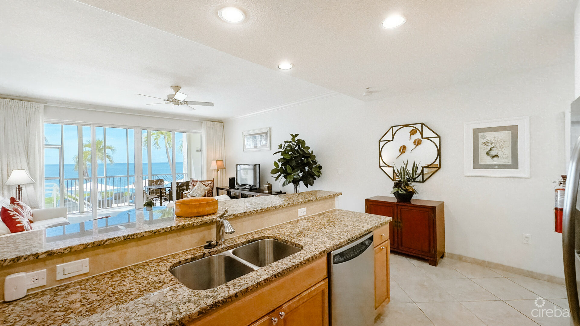 Imagine waking up every day in your beautifully appointed 2-bedroom, 2-bathroom condo at South Bay Beach Club, where the breathtaking views of the Caribbean Sea greet you from your screened porch. This rare ground-floor unit offers direct access to the world-famous Seven Mile Beach, one of the most coveted locations in the Cayman Islands. Spanning 1,342 sqft, this spacious condo is ideal for both luxurious living and smart investment.