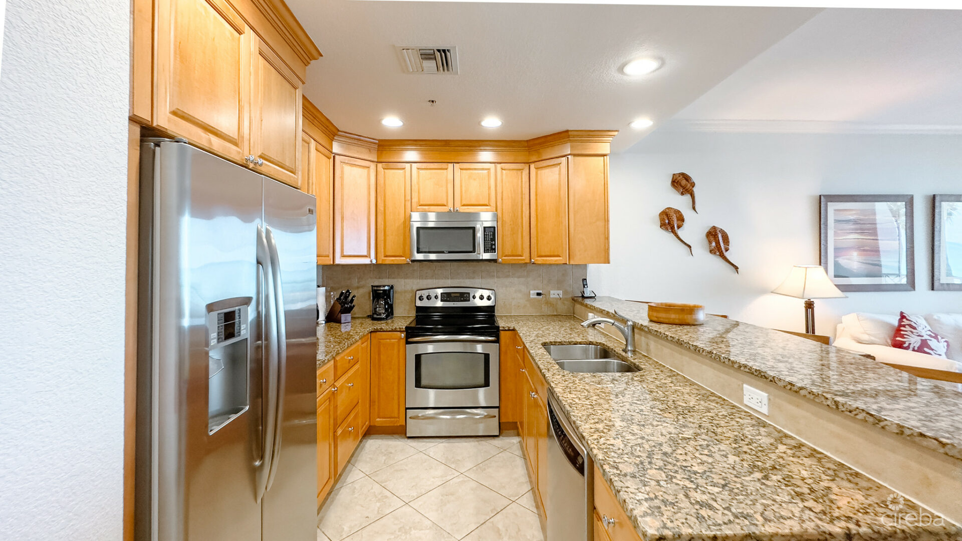 Step outside from your screened porch and you’ll find immediate access to the resort-like common areas of South Bay Beach Club. Enjoy a swim in the pristine pool or simply stroll across the lush landscaped grounds to the soft sands of Seven Mile Beach. Whether you’re in the mood for sunbathing, a quick dip in the crystal-clear waters, or an evening walk along the shore, this condo offers the ultimate beachfront lifestyle.