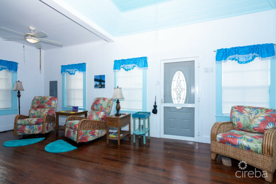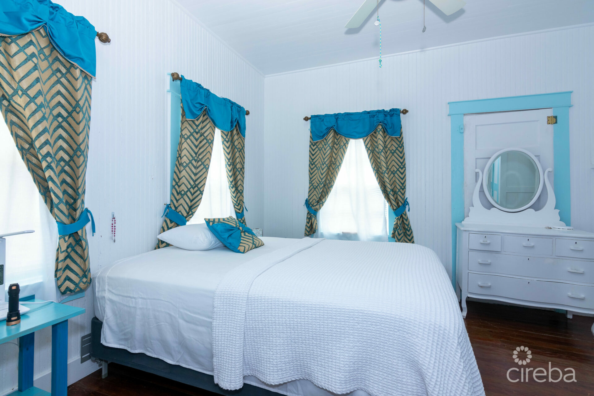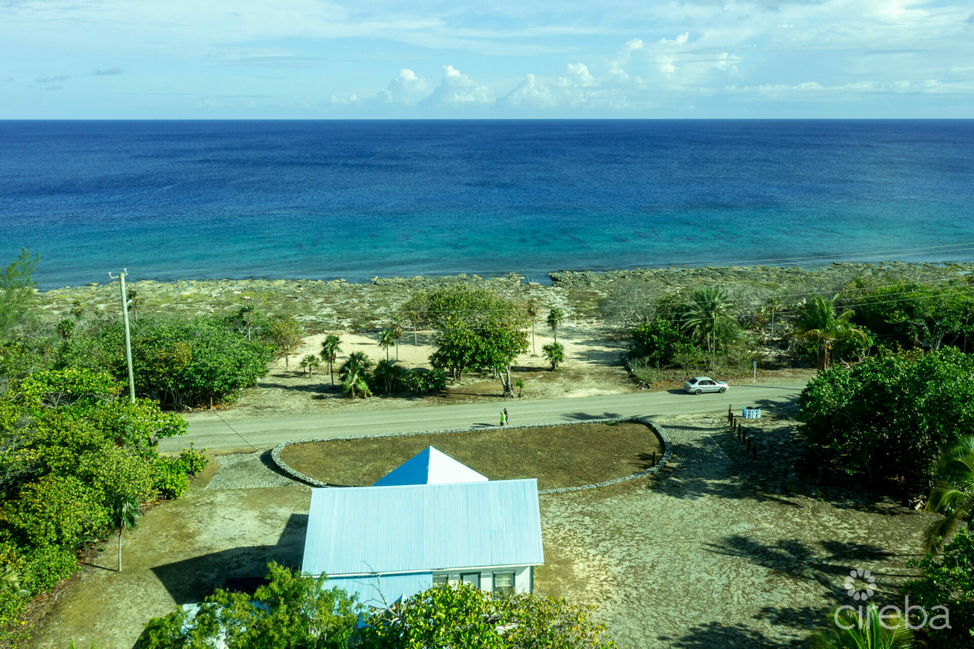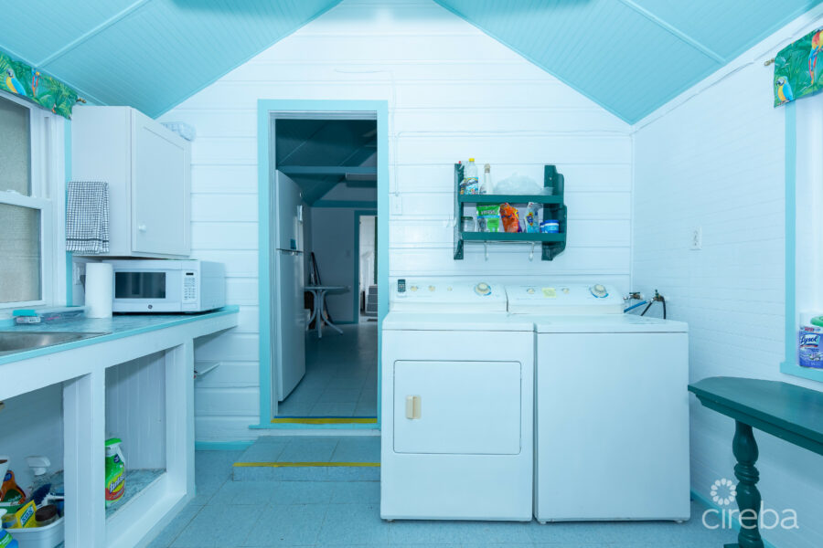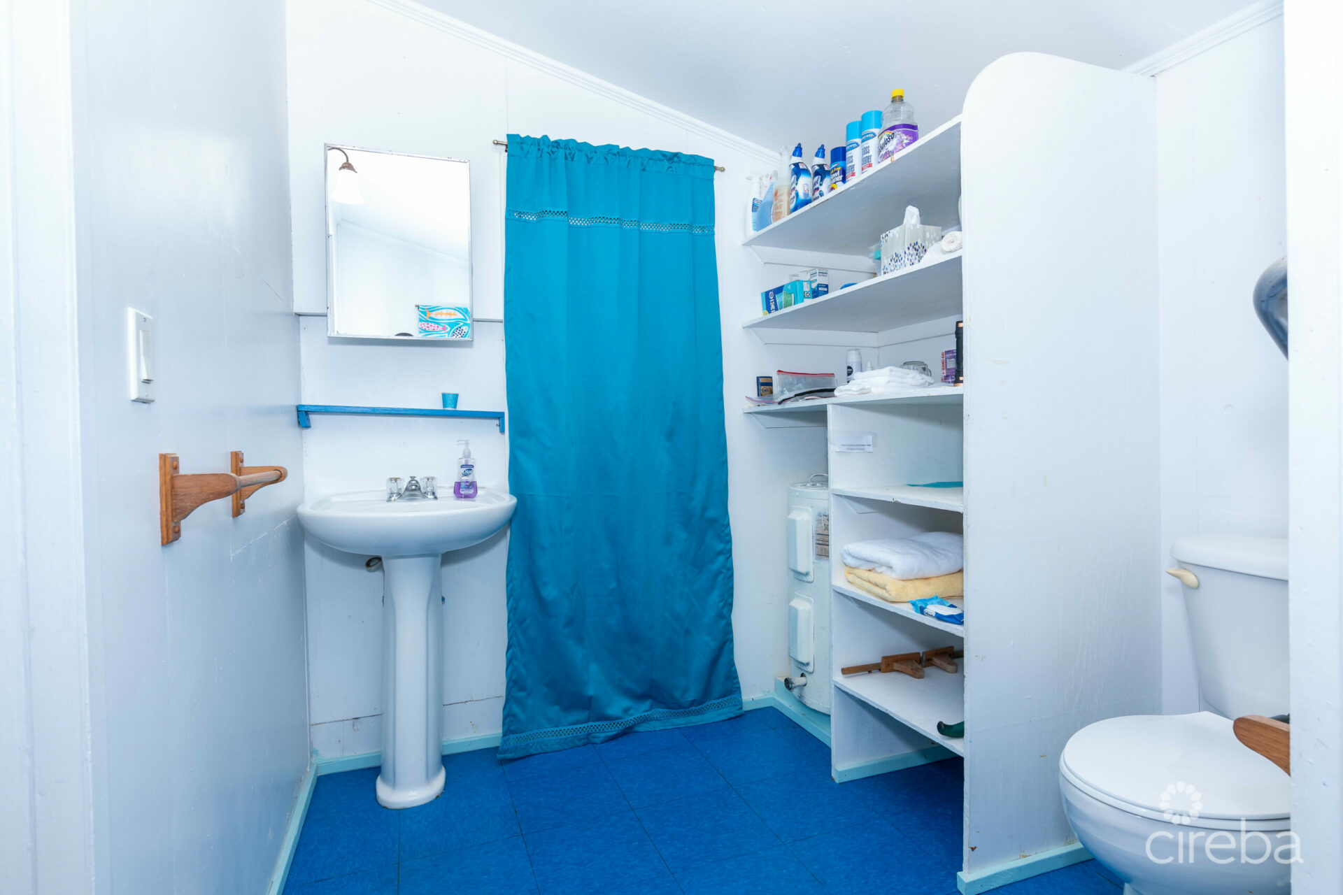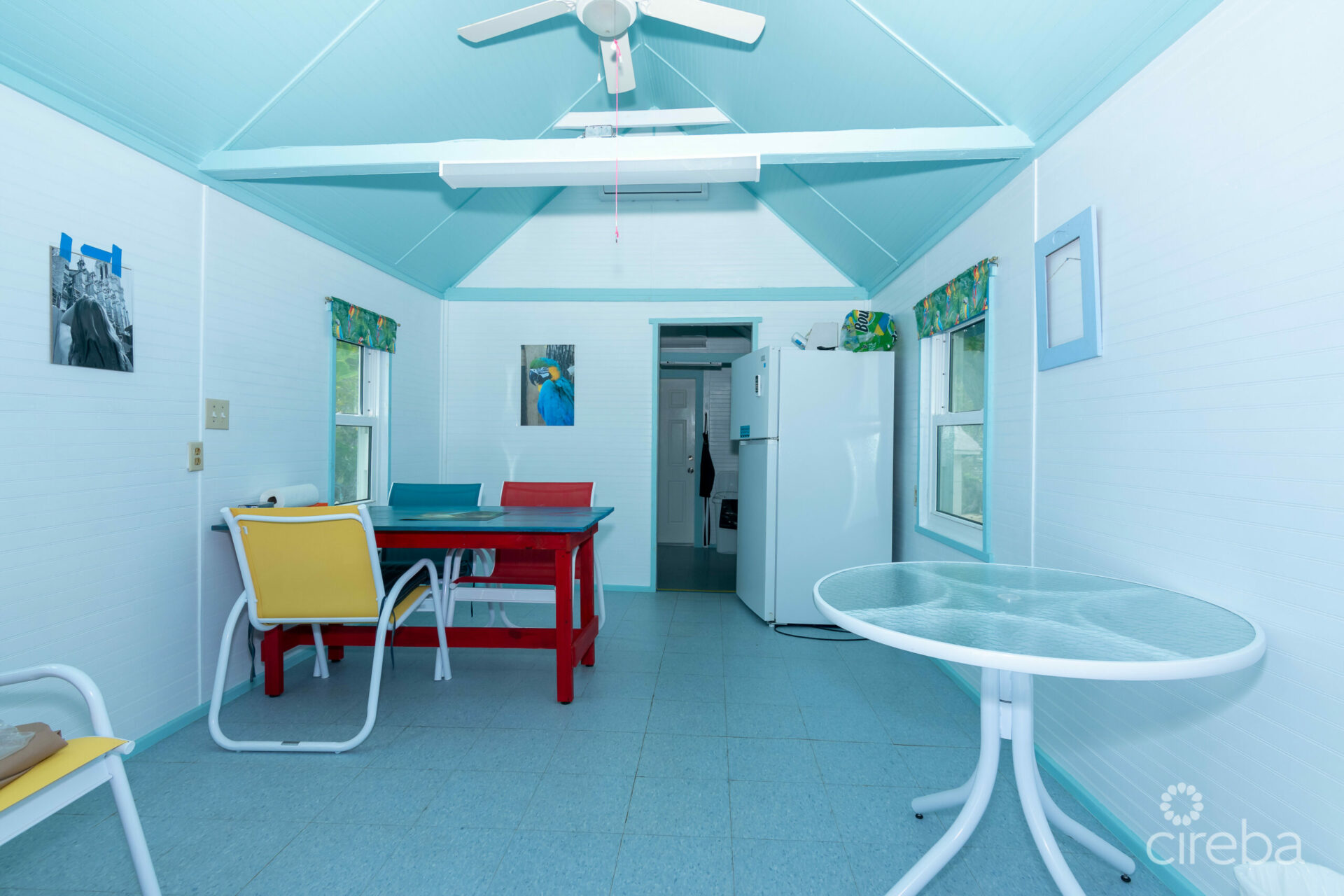 This magnificent traditional Cayman Cottage is situated on almost 3 acres of land, located on the tranquil Northeast Bay of Cayman Brac. This property has ocean front land with you own personal shore dive entry point and white sand. The majestic Bluff rises as you back drop in your back yard. Ample room for another home, apartments or pool. This home was built in 1933 and is recorded in the National Registry. The home has high ceilings – raised rectangular, shiplap wood siding in a bungalow style with ironwood stilts. It is gable ended with a perpendicular painted zinc roof. Kitchen is separate from main house in the old-fashioned caboose style. One car garage and ample storage make this your ideal home or vacation get-away. This property also has two water supplies. You can use the cistern water for irrigation and the city (piped) water for home use